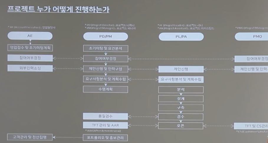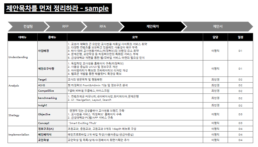 - 서비스 기획 제안, 분석, 실행, 검수, 산출물에 대한 프로세스와 작업 내용, 각 이해 관계자 사항을 이해할 수 있었습니다.